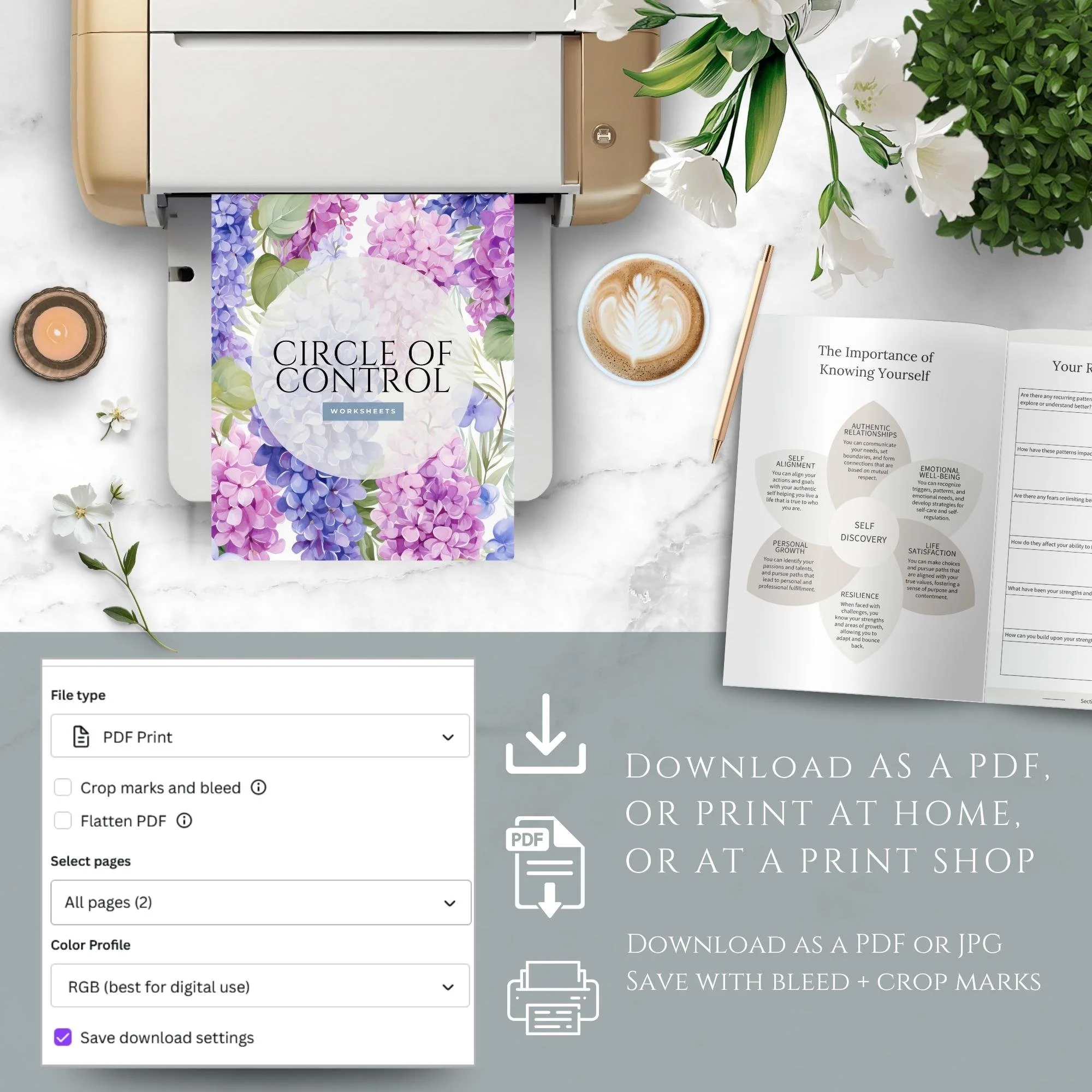 • 38 pages of printable, guided exercises and journaling prompts