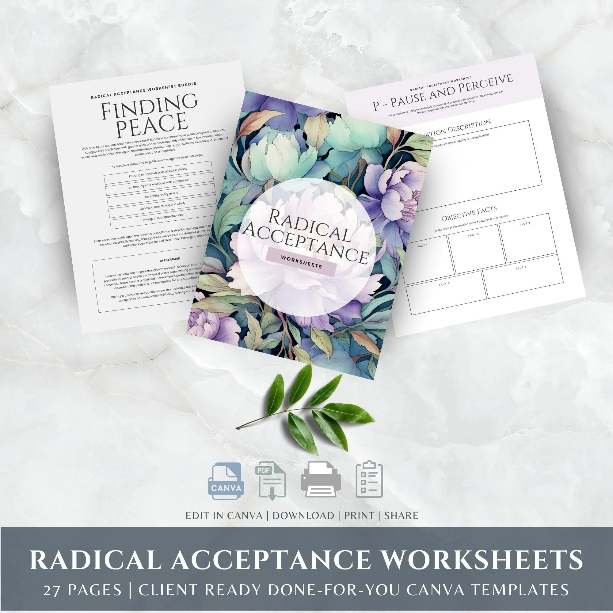 The Coping With Stress Workbook is a 26-page fully editable Canva template designed to help individuals and clients identify, understand, and effectively manage stress.